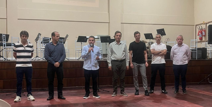 Eleita em março, a nova diretoria do Clube Cruzeiro, em Braço do Norte, tomou posse de forma simbólica na noite de sexta-feira, 10 de abril, no salão principal da sede social, pouco antes da apresentação da Camerata di Venezia. A gestão é liderada por Emerson Machado Fernandes (presidente), tendo Tulio Demay como vice-presidente. Completam a diretoria Glauco Sombrio (tesoureiro), Valcirio Volpato (2º tesoureiro), Lucas Ferreira (secretário), Jeferson Uliano (2º secretário) e Robert Della Bruna (diretor social). Entre os projetos anunciados estão eventos culturais, como apresentações de orquestra e peças teatrais. No calendário social, já estão confirmadas a tradicional feijoada no dia 18 de julho e o retorno do Baile de Debutantes, em 26 de setembro. Mais do que nomes e datas, o clube sinaliza uma tentativa de retomada do seu protagonismo social, algo que a comunidade, historicamente, valoriza.