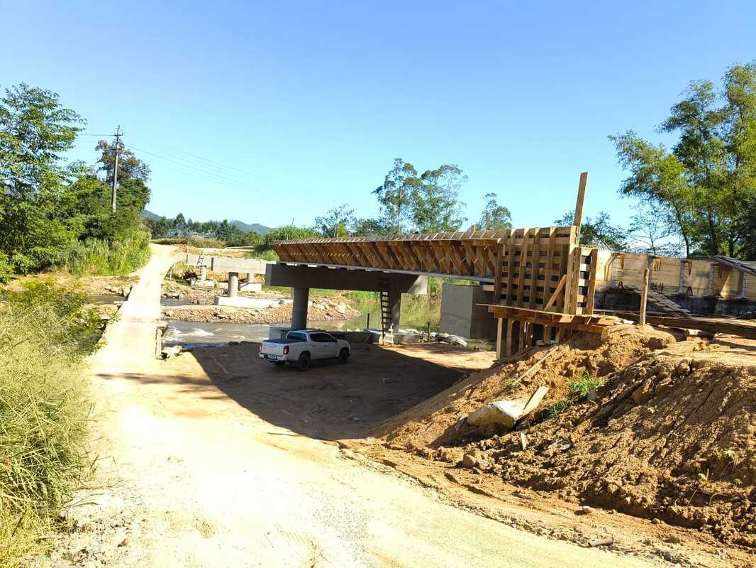 A construção da ponte sobre o Rio Braço do Norte, na localidade da Represa, já ultrapassa 50% de execução, indicando um bom ritmo na obra e com previsão de entrega ainda este semestre. No entanto, enquanto a estrutura definitiva não é concluída, moradores e até caminhões da prefeitura continuam utilizando a antiga passagem, que está visivelmente comprometida. Para evitar um desvio de mais de 10 quilômetros (por São José ou São Maurício), o uso segue sendo necessário e arriscado. Diante disso, o vereador Elton Heidemann sugeriu diretamente ao prefeito Lauro Boeing Júnior a realização de um reforço paliativo na estrutura atual, ao menos para garantir mais segurança temporária. A situação evidencia um ponto crítico: obra em andamento não elimina o problema imediato de quem precisa transitar todos os dias.