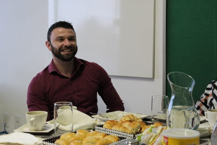 Saboreando o café servido pela panificadora Nack, Kairam, que é natural de Imaruí e residente em Criciúma, falou um pouco sobre a experiência de mais de 10 anos de trabalho na área que lhe renderam mais de mais de 50 mil expectadores em seis países da América do Sul, com cerca de duas mil palestras ministradas.