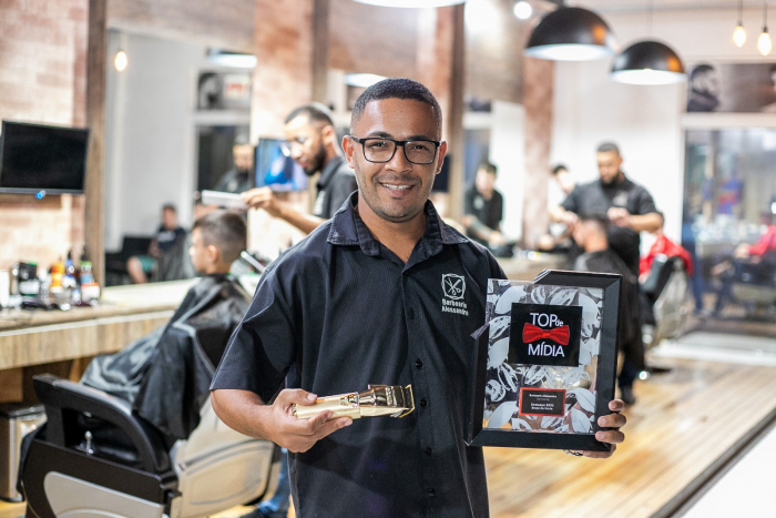Alessandro Luiz Gomes recebe o prêmio da barbearia A mais lembrada na votação do Top de Mídia de 2022 em Braço do Norte, a Barbearia Alessandro foi fundada em 30 de abril de 2010, acumulando 13 anos de atuação. Porém, esta história teve início muito antes. Afinal, o fundador Alessandro Luiz Gomes iniciou o ofício de barbeiro com apenas 9 anos.