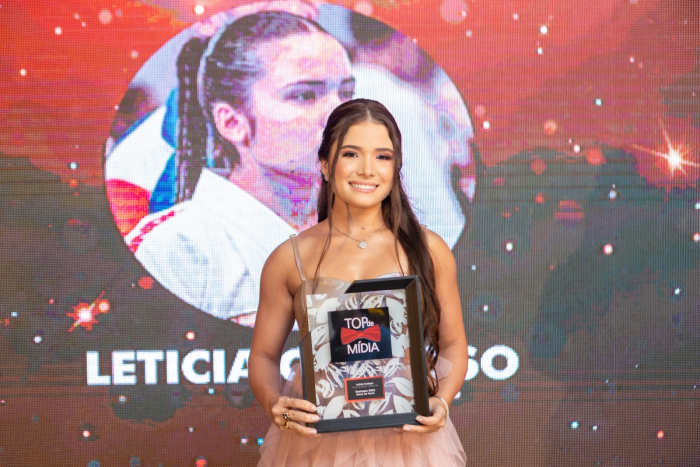 Letícia sobe ao palco do Top de Mídia para receber sua premiação
