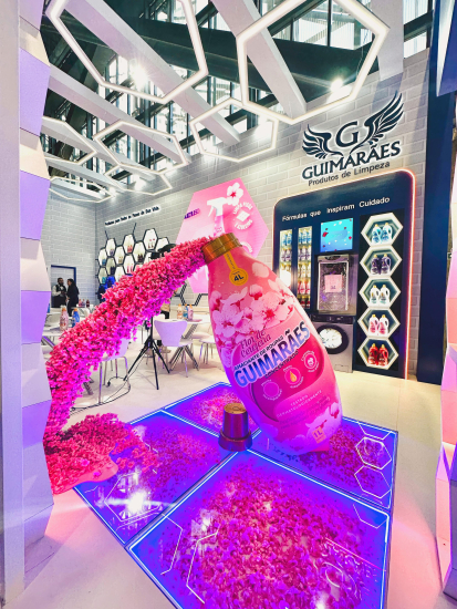 O estande da Guimarães foi pensado para proporcionar uma experiência imersiva e sensorial, combinando elementos visuais, olfativos e interativos. Jardins temáticos com flores naturais representavam cada fragrância dos produtos. Uma Lavanderia Premium cenográfica permitia que os visitantes experimentassem os perfumes diretamente nas roupas e ainda interagissem com um frasco gigante da linha Flor de Cerejeira, uma das novidades da marca.