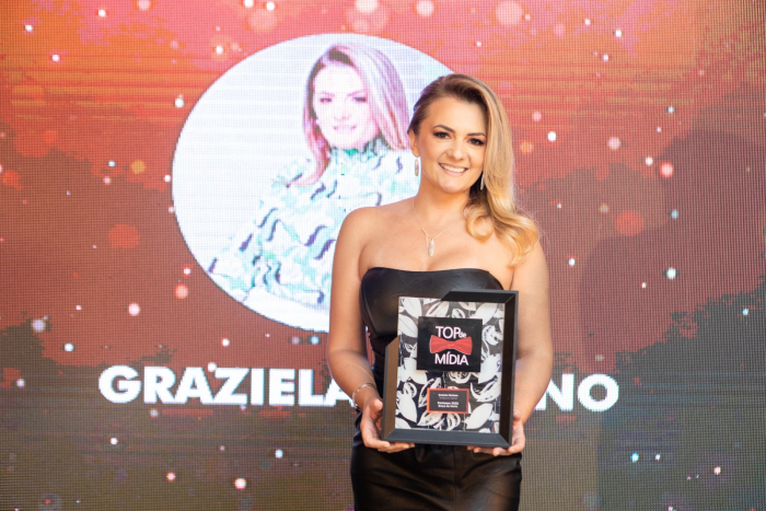 Grazi sobe ao palco do Top de Mídia para receber a premiação A terapeuta capilar Graziela Simiano, que atua há dois anos neste segmento, já é vista como referência. A profissional foi a mais lembrada nesta categoria, em votação on-line do Top de Mídia, realizada em fevereiro. Ela começou sua carreira como cabeleireira, em seu próprio negócio, o Salão Grazi Simiano, há uma década. Durante este período, buscou por algo a mais para oferecer aos clientes, até descobrir sua paixão pela terapia capilar.