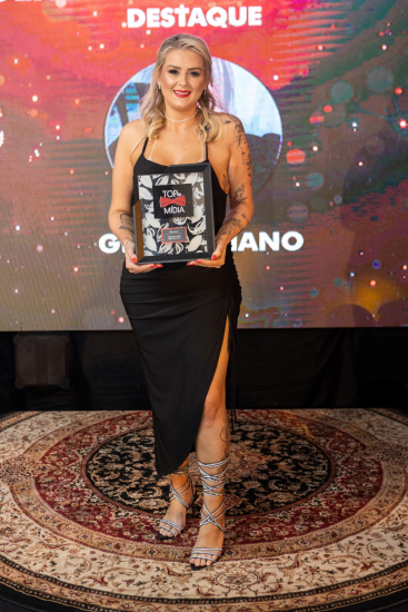 Grazi sobe ao palco duas vezes para receber seus troféus Grazi Uliano é uma empreendedora e lash designer que tem conquistado cada vez mais espaço no mercado da beleza. Com quatro anos consecutivos recebendo o troféu Top de Mídia na categoria de lash designer, ela demonstra o sentimento de gratidão pelo reconhecimento e sabe que isso é fruto de um trabalho de muita dedicação, esforço e amor pela profissão.
