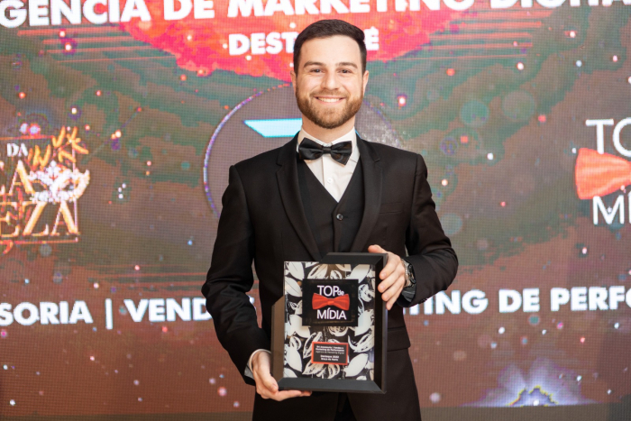 Rodrigo Rafael da Rosa recebe o prêmio durante o evento A R4 Assessoria é uma agência de marketing digital. E foi justamente a primeira a ser a mais lembrada na votação on-line realizada em fevereiro pelo Top de Mídia. A empresa braçonortense tem três anos de atuação e seu objetivo é auxiliar outros negócios a terem resultados exponenciais em vendas e crescimento, principalmente pela internet.