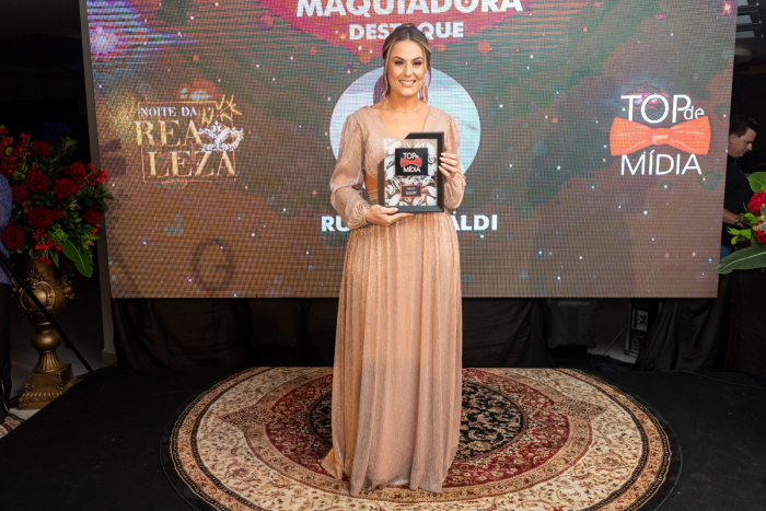Rubia sobe ao palco da premiação para receber seu Top de Mídia Rubia Rinaldi Ferreira é uma maquiadora experiente e talentosa que entende que a arte da maquiagem vai muito mais do que melhorar a aparência física. Para ela, trata-se de uma ferramenta poderosa para elevar a autoestima das mulheres e fazê-las sentirem-se confiantes e autênticas em sua própria pele.