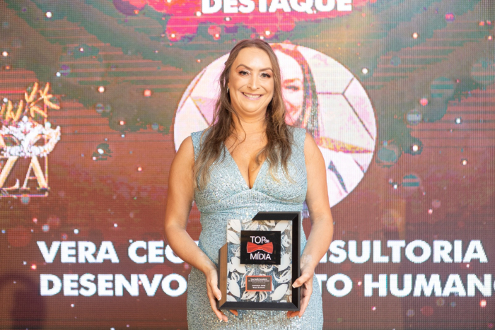 Vera sobe ao palco para receber o troféu Top de Mídia Vera Ceolin é uma gestora de pessoas com vasta experiência na área de desenvolvimento humano e organizacional. Ela é a fundadora da Vera Ceolin – Consultoria em Desenvolvimento Humano, uma empresa especializada em ajudar as empresas a alcançarem seus objetivos por meio da formação de líderes e equipes de alto desempenho.