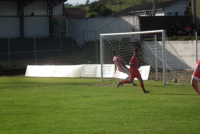 Animado, em seguida saiu o gol da equipe da casa. O volante Eduardo Meurer lançou Léo Prá, a zaga do Metro parou, o atacante do 7 avançou livre, passou pelo Passarela e finalizou para fazer 1 a 0.