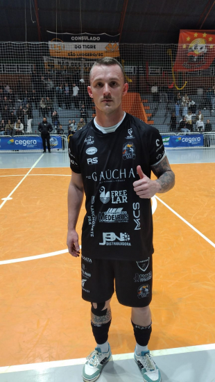 Felipe Tanque, um dos destaques da Associação 1327 para o difícil duelo frente ao Resenha Na rodada que definiu o último classificado a Etapa Semifinal da 19ª Taça Cegero de Futsal, edição 2024, realizada na última sexta-feira, 9, o Bicão fez o que precisava, venceu o Galo Doido por 5 a 1 e carimbou sua vaga. Agora, a partir desta terça-feira, dia 13, o Ginásio Lino Philippi, recebe os jogos de ida, começando a definição de quem vai continuar na briga pelo título.