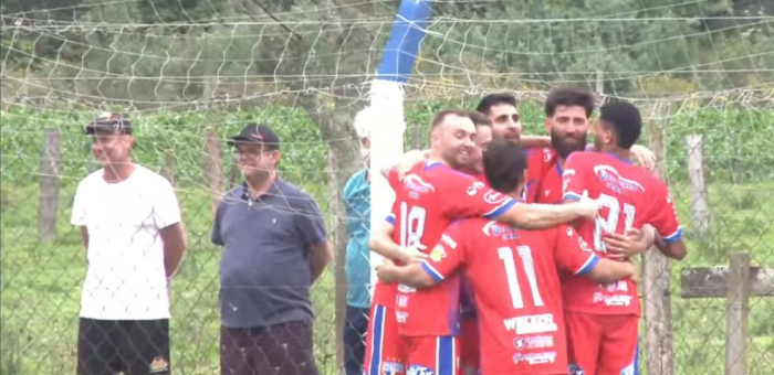 : Fill comemorando seu segundo gol na vitória sobre o 7 O Regional da Liga Amadora Verde Vale de Futebol – LAVVF – prosseguiu na tarde deste sábado, 1º de novembro, com dois jogos, um em Gravatal e o outro em São Ludgero. No da Cidade das Águas Termais, o AE Termas venceu o 7 de Setembro, de Braço do Norte por 4 a 0 e já pensa na liderança da fase e no outro, na Cidade dos Esportes, a CME de São Ludgero perdeu para o AER Municipal por 0 a 2. A equipe sãoludgerense tem duas derrotas na competição e a riofortunense conseguiu seus primeiros pontos.
