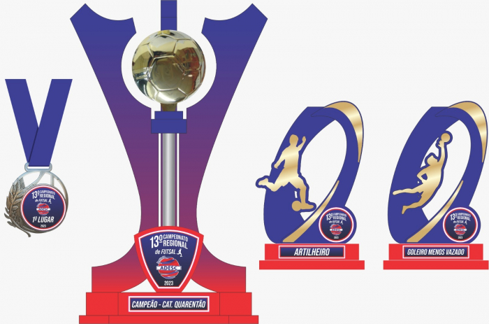 Os bonitos troféus do Regional Veteranos esperam por seus ganhadores A “Cidade dos Esportes” recebe na noite desta sexta-feira, 16, a final do 6º Regional de Futsal Veteranos, competição organizada pelo Instituto Adesc. O troféu da categoria já está no Ginásio da Afai, casa do espetáculo, à espera de seu futuro dono.