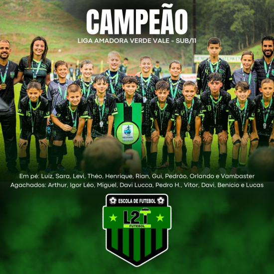 Sub-11 da L2T, Campeão Regional da Verde Vale 2024 O Estádio Waldir Waterkemper, na comunidade da Taipa, Orleans, recebeu neste domino, 8, a final do Regional de Futebol Sub-11 promovido pela Liga Amadora Verde Vale de Futebol – LAVVF. A Escolinha L2T, com sede em Braço do Norte, venceu o Núcleo do Grêmio por 2 a 0 e sagrou-se campeã.
