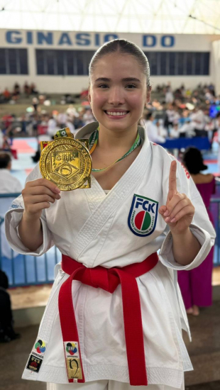 Letícia com a medalha do Hexa Campeonato Brasileiro Leticia “San” Cardoso, a Menina Prodígio de Braço do Norte, se tornou nesta quinta-feira Hexa Campeã Brasileira na Categoria Kata Sub-21. Leticia está em Brasília, na disputa do Campeonato Brasileiro de Karatê 2024, onde estão competindo 480 atletas de todo o país, nas categorias a partir dos 18 anos.