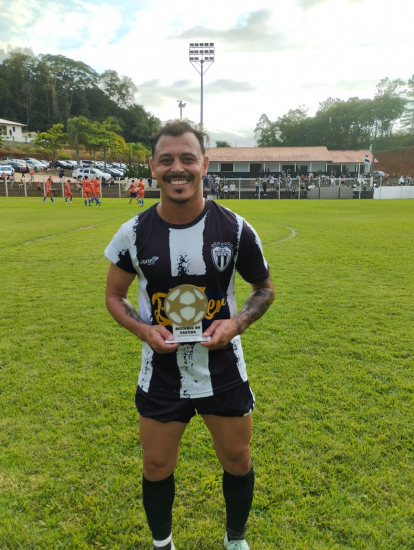 Xarope com o troféu de destaque da partida no Estádio da ERA Municipal AER Municipal e Morro do Boi começaram a decidir uma das vagas na decisão do Regional da Liga Amadora Verde Vale de Futebol – LAVVF – na tarde deste domingo, 10, e a equipe de Rio Fortuna, aproveitando o fator casa, largou em vantagem. Com atuação destacada do seu ala/atacante Xarope, ex-Morro do Boi, os alvinegros venceram por 3 a 1.