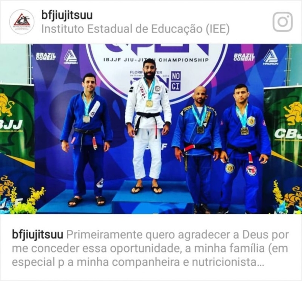 Benício ficou em segundo lugar na categoria preta, master 1 peso pena, até 70 quilos, com kimono. No pódio junto com o policial, competidores de São Paulo e do Paraná.