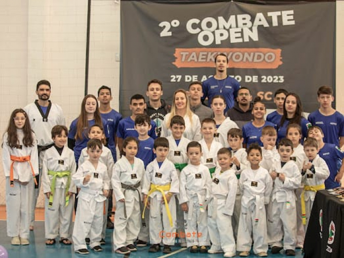 : Atletas da KSTKD comemoram o terceiro lugar conquistado em Criciúma Atletas da academia Kaio Simão de Taekwondo – KSTKD, com atletas de Braço do Norte e São Ludgero, conquistaram o terceiro lugar geral na disputa do 2⁰ Combate Open de Taekwondo, realizado em Criciúma no dia 27 de agosto, evento da Federação Catarinense de Taekwondo. A delegação contou com 32 atletas, conquistando um total de 37 medalhas.