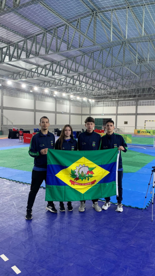 Professor Kaio com seus alunos em Curitibanos. Em 2015 o atleta Kaio Simão trouxe uma medalha de bronze para Braço do Norte competindo nos Joguinhos Abertos de Santa Catarina, competição com limite máximo de 18 anos. Nesta semana, oito anos depois, agora como professor, Kaio comandou um grupo de três atletas que foram representar Braço do Norte na mesma disputa e um deles repetiu o pódio do seu mestre. Gabrieli Buss Farias é medalha de bronze nos Joguinhos Abertos.