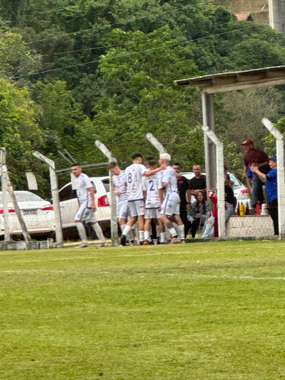 Jogadores do União comemoram o gol do Alemão, o de empate do time Celeste AA União e 7 de Setembro abriram na tarde deste sábado, no Estádio Pedro Dutra, em Braço o Norte, a Fase Semifinal do Regional da Liga Amadora Verde Vale de Futebol – LAVVF. Diante de um bom público, o confronto acabou empatado em 2 a 2, resultado que deixa a vaga em aberto para a partida da volta no próximo fim de semana, quando o 7 será o mandante. O lance triste da partida foi a possível fratura no braço do atacante do União, o Max, logo no início do segundo tempo.