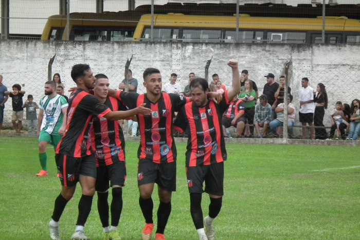 Camisa 9 Urbano comemorando seu primeiro gol na partida A edição 2024 do Municipal de Futebol de Campo de Armazém começou com um bom duelo na Categoria Titular. Após sair em desvantagem, gol de Tiago Silvy para o Palmeirinhas, o Vila Nova/Ferroviário empatou ainda no primeiro tempo e empurrado pela sua barulhenta torcida buscou a virada na etapa final. Ambos os gols foram marcados pelo centroavante Vinicius Urbano.