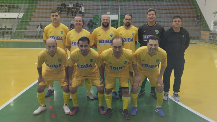 Equipe de São Ludgero comemora primeira posição e vaga na semifinal Precisando pelo menos empatar para conquistar o objetivo de ser primeiro colocado da Chave A do 6º Campeonato de Futsal Veteranos do Instituto Adesc, a CME de São Ludgero foi até Santa Rosa de Lima na noite desta segunda-feira, 15 de maio, e no Ginásio Edson Bez Filho empatou em 4 a 4 com a CME local. O empate também foi bom para a equipe de Santa Rosa, que foi a cinco pontos e vai jogar a partida eliminatória contra o segundo colocado da Chave B.