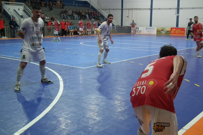 Após sair perdendo por 2 a 0, com dois gols do fixo Café, a CME de Santa Rosa de Lima reagiu e com a entrada do ala Petry, usando as bolas paradas, buscou o empate no período inicial e a virada no segundo. Cobrança de escanteio feita por Lucas Thiede, Petry mandou a bomba para fazer 1 a 2; depois Petry tabelou com Thiede e deixou tudo igual no primeiro tempo. Outro escanteio e Petry fez 2 a 3; um dos melhores em quadra, Kathior ganhou duas prensada e bateu na saída do goleiro Nicolas para fechar o placar em 2 a 4. SRL ficou com o primeiro lugar da chave e está classificado as semifinais, a CME de Grão-Pará e CME de São Martinho vão ter que jogar a partida eliminatória.
