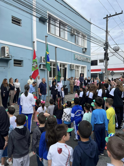 As escolas e CEIs da rede de ensino municipal destacaram a bandeira do município, suas cores e brasão além do novo uniforme que ainda está sendo entregue a todos os alunos da rede.