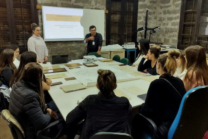 Conforme o professor da disciplina de Metodologia de História, Rodrigo da Rosa, a visita ao arquivo foi uma experiência enriquecedora e profundamente significativa. “Essa oportunidade de mergulhar nas páginas do passado e explorar documentos, registros e materiais antigos nos proporcionou uma conexão tangível com as raízes da educação e a evolução das práticas pedagógicas ao longo do tempo”, comentou.