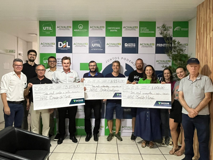 Ao todo, foram arrecadados R$ 8.570,00 no dia do evento que reuniu quase 300 convidados entre empresários, autoridades e lideranças da região no auditório do Sicoob, em Braço do Norte. O valor integral foi dividido entre as Apaes dos municípios de abrangência da Acivale (Braço do Norte, São Ludgero e Grão-Pará), conforme o número de alunos atendidos por entidade.