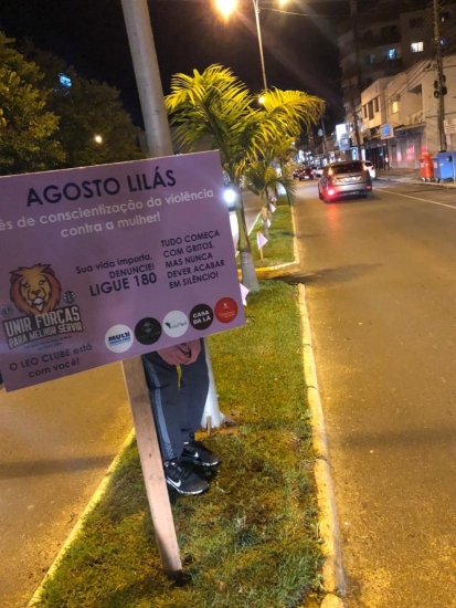 A ação ocorreu no sábado, dia 15. Cerca de 140 bandeiras foram instaladas na avenida pelo grupo, além de placas com os dizeres da campanha e com do número disque-denúncia da Central de Atendimento à Mulher: o 180. “O Leo Clube já tinha realizado essa campanha no ano passado. Teve uma boa repercussão, então repetimos”, conta Amanda Turossi, segundo secretário do Leo Clube Vale do Braço do Norte.