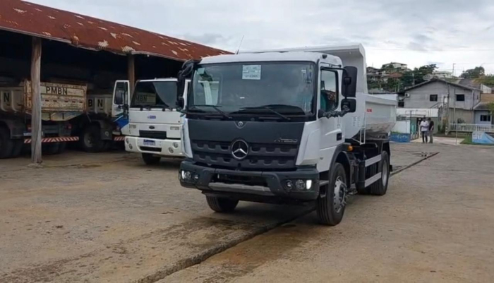 Os novos veículos, modelo Atego, reconhecidos pela robustez e eficiência, passam a integrar a frota da Secretaria Municipal de Infraestrutura. Serão utilizados em serviços de manutenção, transporte de materiais, apoio às obras e atendimento de demandas tanto na área urbana quanto no interior.