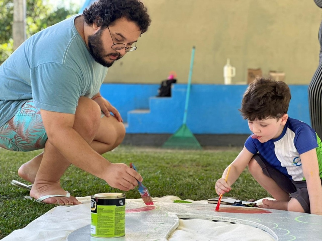 A preparação do evento já mobiliza a comunidade. Na atividade realizada nesta terça-feira, a Praça dos Direitos Humanos foi transformada em um ateliê coletivo a céu aberto. Com tinta nas mãos, crianças deram vida às estruturas decorativas, explorando cores vibrantes e desenhos inspirados na alegria carnavalesca.