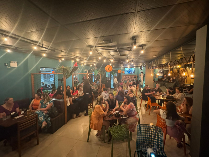 Educadores e profissionais da área lotaram o local do evento para acompanhar a palestra do professor Matiolla Momentos de reflexão, autoconhecimento e descontração marcaram o 2º Happy Hour da Educação, promovido pela Câmara Técnica (CT) Educacional do Programa de Desenvolvimento Econômico Local de Braço do Norte (DEL-BN). O evento reuniu na última terça-feira, 29 de outubro, educadores e profissionais da área no The Ship Burgers.