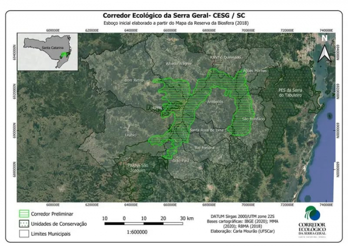 Corredor Ecológico ocupa uma área de 1.716 km², contemplado 46 municípios As consequências da criação de um corredor ecológico interligando o Parque Nacional de São Joaquim ao Parque Estadual da Serra do Tabuleiro têm sido abordadas pelo advogado e geógrafo Eduardo Bastos Moreira Lima em suas redes sociais. Em seus pronunciamentos, ele alerta para as possíveis consequências negativas para propriedades privadas de municípios da região.