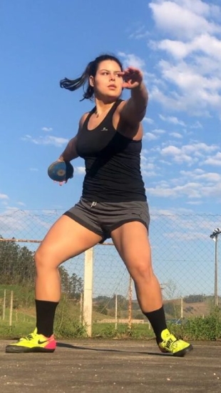 Agora, de volta a Braço do Norte, dedica-se à sua rotina de treinamentos diários até que possa voltar a competir em alto nível, momento que aguarda com ansiedade e esperança em alcançar grandes marcas. “O atletismo é considerado base para os outros esportes. A minha prova, o Lançamento de Disco, não é muito conhecido atualmente, mas é uma prova linda, que envolve força, velocidade e técnica. Ser lançadora de discos é o meu trabalho, isso me trouxe experiências, viagens e amigos. Minha melhor marca é 52,31 metros, e continuo em busca de melhorar essa marca e chegar perto dos 70 metros. Ainda tenho muito trabalho pela frente, mas tenho como objeto chegar aos Jogos Olímpicos. Sempre acreditei no trabalho duro, e assim vou chegar lá”.