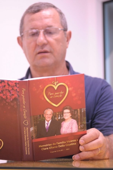 Essa e outras histórias estão no livro ‘Para Guardar no Coração’, elaborado pelos filhos de Vicente Carlos Della Giustina e Clara Uliano Della Giustina, eles decidiram manter viva a história dos pais e editaram a obra, que conta a história da família. A publicação tem 364 páginas e foi lançada oficialmente na segunda-feira, dia 3, em uma ato solene na Câmara de Vereadores de Braço do Norte.
