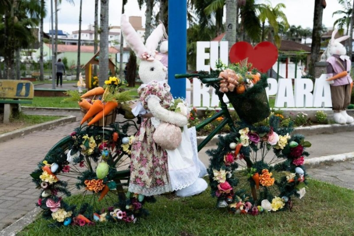 Pela primeira vez em sua história, o município de Grão-Pará ganha uma decoração especial para receber a Páscoa. A Praça Anésio Faust e a fachada do prédio da Prefeitura ganharam, durante essa semana, ornamentação diferenciada. Um ovo e uma casinha de coelho, em cogumelos gigantes, fazem parte do arranjo. Alguns lojistas também entraram no clima e já decoraram as fachadas de seus estabelecimentos.