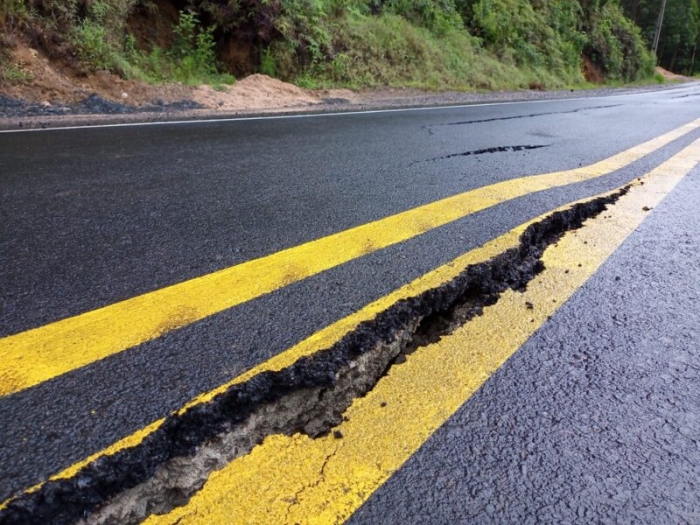 . Equipes seguem trabalhando na limpeza e recuperação da rodovia - houve quedas de barreiras e rachaduras e rompimento de pista