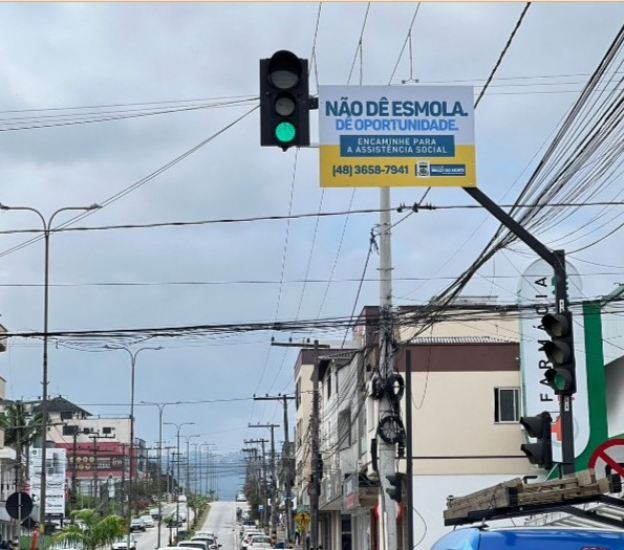 Prefeitura instalou placas nos semáforos da Avenida Felipe Schmidt para conscientizar a população para que não dê esmolas As ações visando dar assistência correta e apoio aos moradores de rua seguem em Braço do Norte tiveram novo capítulo nesta quarta-feira, 28 de fevereiro. A Prefeitura de Braço do Norte instalou placas nos semáforos da Avenida Felipe Schmidt para conscientizar a população para que não dê esmolas, mas encaminhe o pedinte para a Assistência Social do Município. Lá, será feito o cadastro e os encaminhamentos necessários, auxiliando, inclusive, na busca de empregos através do Sine.