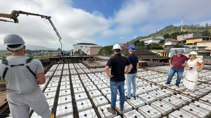 De acordo com a equipe técnica, a concretagem foi concluída dentro do cronograma previsto e contou com o trabalho integrado de engenheiros, arquiteta, operários e servidores. A obra já alcança pouco mais de 36% de execução e segue em ritmo acelerado.