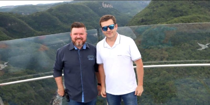O futuro secretário de Turismo, Indústria e Comércio, Thiago Deodato Pereira encontrou-se neste sábado, 26 de dezembro, com o gerente da SkyGlass, de Canela (RS) e ex-secretário de Turismo de Gravatal Fabrício de Medeiros.
