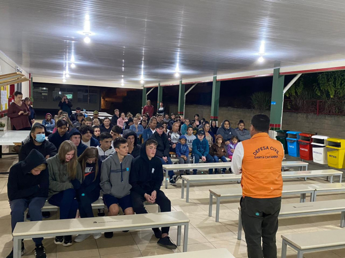 Por conta de um projeto que a escola tem em parceria com a Defesa Civil de Santa Catarina, o “Defesa Civil na Escola”, a instituição realizou a solicitação à cooperativa da palestra, que foi ministrada pela engenheira ambiental Katia Caroline Pertille, da empresa Projetos e Estudos Ambientais Ltda (Pronatur). Por sua formação, possui conhecimentos especializados sobre o assunto. Ela foi acompanhada por Adam Franzner, representante da Urbano Alimentos.