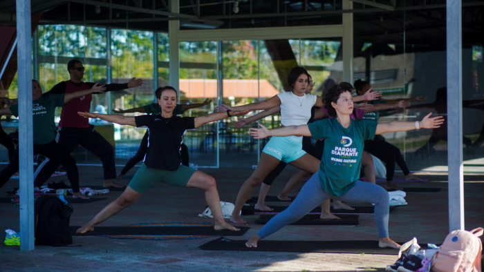 Evento celebra o Dia Internacional da Yoga com práticas, música, meditação e alimentação saudável no Parque Diamante +Energia, a partir das 8h30