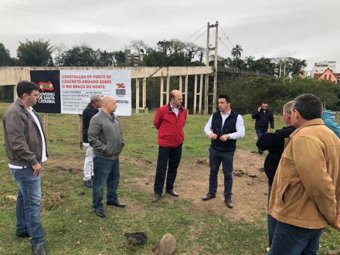A administração municipal de Braço do Norte e representantes da empresa Trilha, de Florianópolis, visitaram já nesta segunda-feira, 20, o local onde será montado o canteiro de obras para a construção da ponte Celso Kindermann, que liga o centro do município ao Bairro Lado da União.