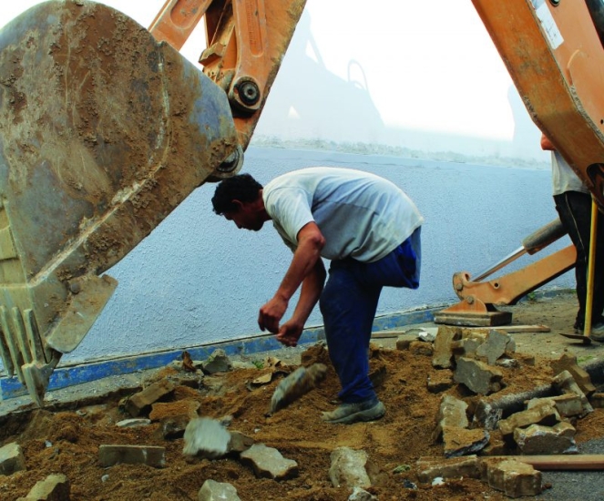 Quanto a trabalhar com a colocação de meio-fio ou com o serviço pesado, Douglas diz que é uma opção sua. “Graças a Deus e ao bom trabalho que realizei por onde passei até hoje tenho bastante opções de trabalho. Estou fazendo este trabalho aqui porque gosto e o salário é bom”, diz enquanto pula em uma perna e retira os pavers de uma calçada com a ajuda de uma retroescavadeira hidráulica.