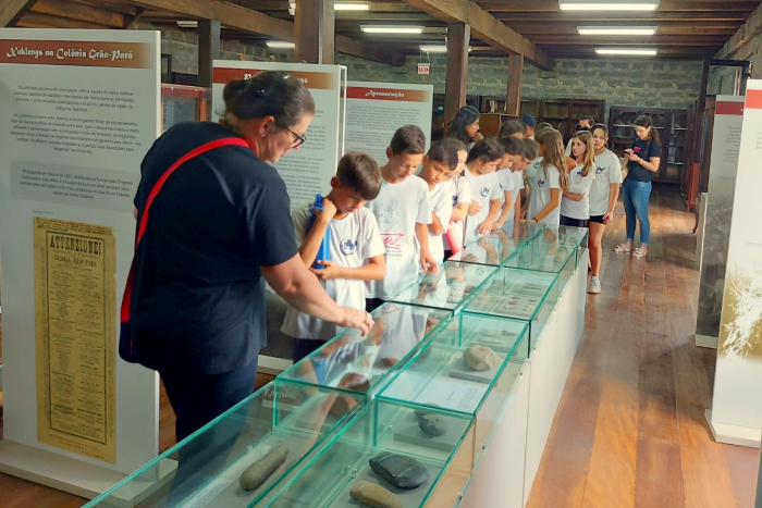 Além das oficinas, as escolas realizaram visitas guiadas à exposição “Povos Indígenas: registros dos povos Xoklengs em Orleans e na região sul catarinense”, em cartaz no primeiro piso da Casa da Pedra. A mostra é uma oportunidade rara de contato com registros históricos e culturais dos povos que habitaram a região muito antes da colonização.