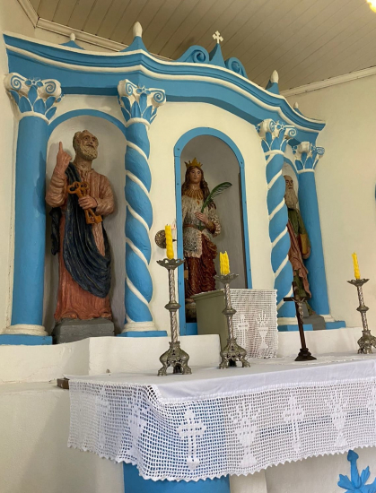 Inaugurada a capela em 1887, João Batista Uliano moldou três imagens utilizando a argila comum como matéria-prima, adicionando à massa crina de cavalo e pelo de porco, a fim de obter consistência e evitar rachaduras. As imagens produzidas, de São Pedro, São Paulo e Santa Augusta, ornamentam a capela até os dias atuais.