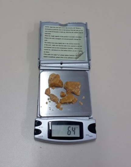 Em buscas na residência ao cumprir mandado de busca e apreensão na residência foram encontrados 6,4 gramas de crack, além de material para fracionar, embalar e diluir o entorpecente.