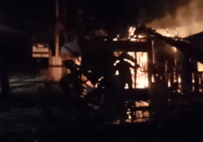 Um incêndio no começo da madrugada de ontem destruiu completamento o bar de propriedade de Salésio Brasius no Centro de Grão-Pará. Os bombeiros usaram usaram 13 mil litros de água para debelar as chamas e resfriar as casas nas proximidades, já que a cacharia da já estava pegando fogo. Salésio acredita que o prejuízo no bar, de 160 metros quadrados, tenha ficado na casa de 140 mil, com a perda da construção de madeira e do que estava em seu interior: bebidas, um freeser com carne, balcões, banquetas, quadros. Tudo que estava lá dentro queimou.