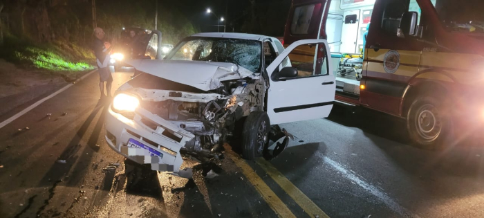 No automóvel, o motorista apresentava ferimento na face e um corte lacerante no braço esquerdo. Já a caroneira sofreu um ferimento corto-contuso no rosto, sendo atendida com curativo e contenção de hemorragia. Ambos foram conduzidos à Fundação Hospitalar Santa Otília pela equipe dos bombeiros.