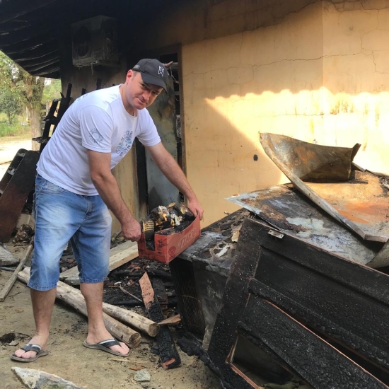 Gilson Back Volpato, 38 anos, proprietário da Casa da Pedra, no Alto Travessão, comenta, em entrevista à Folha do Vale, como iniciou o incêndio que destruiu seu estabelecimento comercial no último domingo, meio-dia, em Braço do Norte. O prejuízo está estimado em R$ 200 mil.
